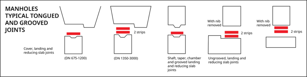 Aquastrip is designed to fit all tongued and grooved, rebated and ogee manhole joints. It is